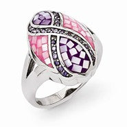 Sterling Silver Pink & Purple Mosaic MOP & CZ Ring