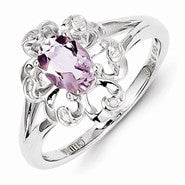 Sterling Silver Pink Quartz Diamond Ring