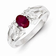 Sterling Silver Red Oval CZ with Side Stones Ring