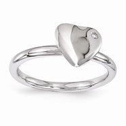 Sterling Silver Rhodium-plated Heart Diamond Ring