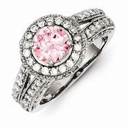 Sterling Silver Round Pink & White CZ Ring