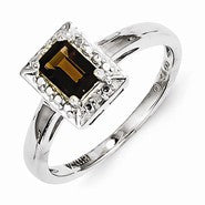 Sterling Silver Smoky Quartz Diamond Ring