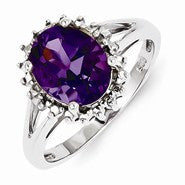 Sterling Silver w/Rhodium Amethyst & Diamond Ring