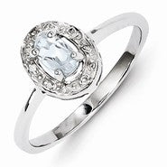 Sterling Silver w/Rhodium Aqua & Diamond Ring