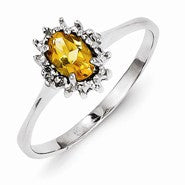 Sterling Silver w/Rhodium Citrine Diamond Ring
