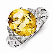 Sterling Silver w/Rhodium Citrine Diamond Ring
