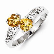 Sterling Silver w/Rhodium Citrine Heart Ring