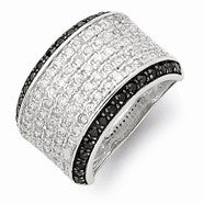 Sterling Silver w/Rhodium Clear & Black CZ Ring