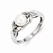 Sterling Silver w/Rhodium FW Cultured Button Pearl & Diamond Ring