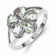Sterling Silver w/Rhodium Green Amethyst & Diamond Ring