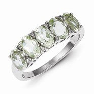 Sterling Silver w/Rhodium Green Quartz & Diamond Ring