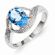 Sterling Silver w/Rhodium Light Swiss Blue Topaz & Diamond Ring