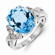Sterling Silver w/Rhodium Light Swiss Blue Topaz Diamond Ring