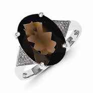 Sterling Silver w/Rhodium Pear Smokey Quartz & Diamond Ring
