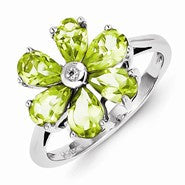 Sterling Silver w/Rhodium Peridot & Diamond Flower Ring