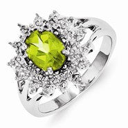 Sterling Silver w/Rhodium Peridot & Diamond Ring