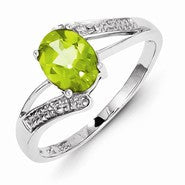 Sterling Silver w/Rhodium Peridot & Diamond Ring