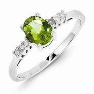 Sterling Silver w/Rhodium Peridot & Diamond Ring