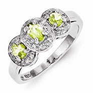Sterling Silver w/Rhodium Peridot & Diamond Ring