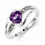 Sterling Silver w/Rhodium Plated Diamond and Amethyst Heart Ring