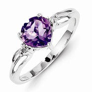 Sterling Silver w/Rhodium Plated Diamond and Amethyst Heart Ring