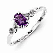 Sterling Silver w/Rhodium Plated Diamond and Amethyst Oval Ring