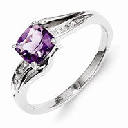 Sterling Silver w/Rhodium Plated Diamond and Amethyst Square Ring
