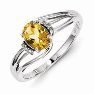 Sterling Silver w/Rhodium Plated Diamond and Citrine Oval Ring