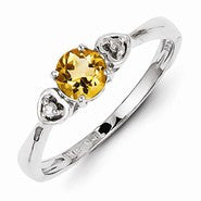Sterling Silver w/Rhodium Plated Diamond and Citrine Round Ring