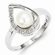 Sterling Silver w/Rhodium Plated Diamond and FW Cultured Pearl Ring