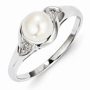 Sterling Silver w/Rhodium Plated Diamond and FW Cultured Pearl Ring
