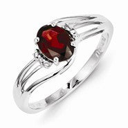 Sterling Silver w/Rhodium Plated Diamond and Garnet Oval Ring