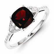 Sterling Silver w/Rhodium Plated Diamond and Garnet Ring