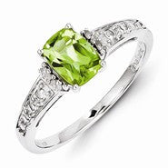 Sterling Silver w/Rhodium Plated Diamond and Peridot Cushion Ring