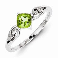 Sterling Silver w/Rhodium Plated Diamond and Peridot Cushion Ring