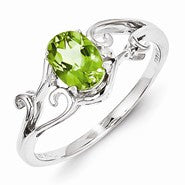 Sterling Silver w/Rhodium Plated Diamond and Peridot Oval Ring