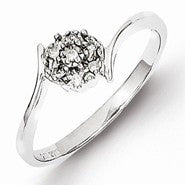 Sterling Silver w/Rhodium Polished Diamond Flower Ring