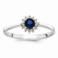 Sterling Silver w/Rhodium Round Sapphire & Diamond Ring