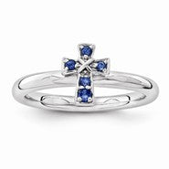 Sterling Silver w/Rhodium Sapphire Cross Ring