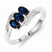 Sterling Silver w/Rhodium Sapphire & Diamond Ring