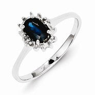 Sterling Silver w/Rhodium Sapphire Diamond Ring