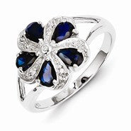 Sterling Silver w/Rhodium Sapphire Diamond Ring