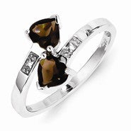 Sterling Silver w/Rhodium Smokey Quartz & Diamond Heart Ring