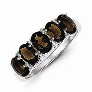 Sterling Silver w/Rhodium Smokey Quartz & Diamond Ring