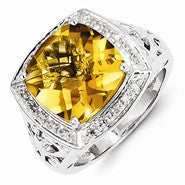 Sterling Silver Whiskey Quartz and Diamond Ring