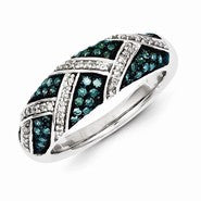 Sterling Silver White & Blue Diamond Wedding Band Ring