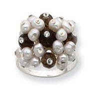 Sterling Silver White Cultured Pearl/Smokey Quartz & CZ Ring