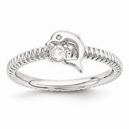 Sterling Silver White Topaz & Diamond Dolphin Ring