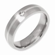 Titanium and Sterling Silver Inlay 6mm Diamond Brushed Wedding Band Ring