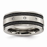 Titanium Black IP-plated Cable and Diamonds 10mm Brushed Wedding Band Ring